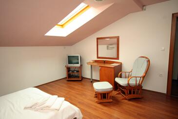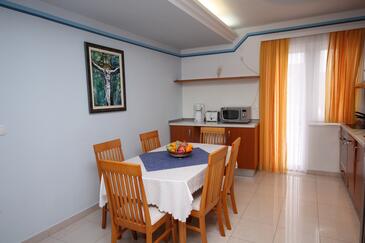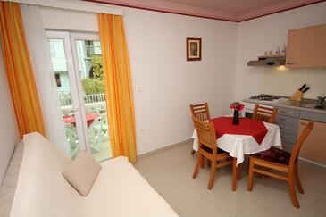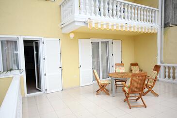 Az Apartman 4 főt tud fogadni. Az ágyak a/az 2 hálószobában vannak, melynek méretei 75m2. A forró nyári estéket a vendégek saját teraszukon élvezhetik. Az apartmanból tengerre néző kilátás nyílik. A közös barbecue-helyet a vendég szabadon használhatja. A szállásegységbe lehetséges háziállatot hozni felár ellenében.