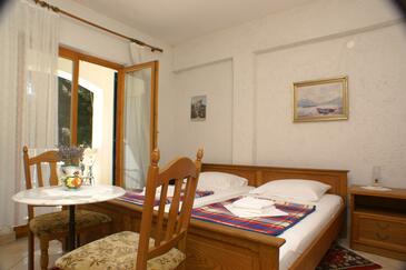 Az Szoba 2 főt tud fogadni. Az ágyak a/az 1 hálószobában vannak, melynek méretei 16m2. A forró nyári estéket a vendégek saját teraszukon élvezhetik. A szobából tengerre néző kilátás nyílik. A szállásegységbe lehetséges háziállatot hozni felár ellenében. A lefoglalt szállásegység a szoba kategóriába tartozik, amely saját fürdőszobával rendelkezik, azonban konyha illetve konyha használat nem tartozik a felszereltséghez..