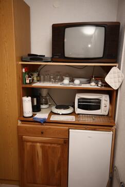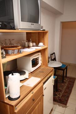 Az Szoba 2 főt tud fogadni. Az ágyak a/az 1 hálószobában vannak, melynek méretei 16m2. A forró nyári estéket a vendégek saját teraszukon élvezhetik. A szobából tengerre néző kilátás nyílik. A szállásegységbe lehetséges háziállatot hozni felár ellenében. A lefoglalt szállásegység a szoba kategóriába tartozik, amely saját fürdőszobával rendelkezik, azonban konyha illetve konyha használat nem tartozik a felszereltséghez..