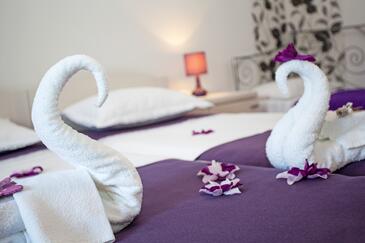 Az Apartman 7 főt tud fogadni. Az ágyak a/az 3 hálószobában vannak, melynek méretei 94m2. A forró nyári estéket a vendégek saját teraszukon élvezhetik. Az apartmanból tengerre néző kilátás nyílik. A teljes élvezet és kikapcsolódás érdekében van saját barbecue hely is, csakis e szálláshely vendégei számára. A vendégek itt tartózkodásuk ideje alatt kikapcsolódás céljából használhatják a magán medencét. A szállásegységbe lehetséges háziállatot hozni, ennek költségét a foglalási díj tartalmazza.