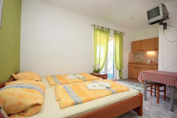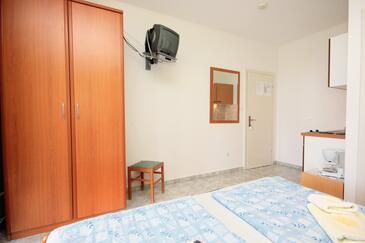 Az Stúdió 2 főt tud fogadni. Az ágyak a/az 1 hálószobában vannak, melynek méretei 17m2. A forró nyári estéket a vendégek saját teraszukon élvezhetik. A stúdióból tengerre néző kilátás nyílik. A közös barbecue-helyet a vendég szabadon használhatja. A szállásegységbe lehetséges háziállatot hozni felár ellenében.