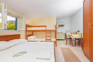Az Stúdió 2 főt tud fogadni. Az ágyak a/az 1 hálószobában vannak, melynek méretei 17m2. A forró nyári estéket a vendégek saját teraszukon élvezhetik. A stúdióból tengerre néző kilátás nyílik. A közös barbecue-helyet a vendég szabadon használhatja. A szállásegységbe lehetséges háziállatot hozni felár ellenében.