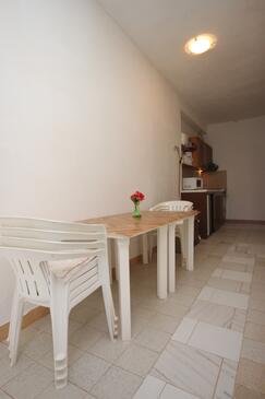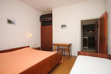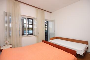 Az Apartman 6 főt tud fogadni. Az ágyak a/az 2 hálószobában vannak, melynek méretei 50m2. A forró nyári estéket a vendégek saját teraszukon élvezhetik. Az apartmanból tengerre néző kilátás nyílik. A közös barbecue-helyet a vendég szabadon használhatja. A szállásegységbe lehetséges háziállatot hozni felár ellenében.