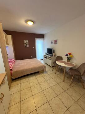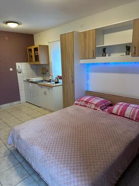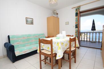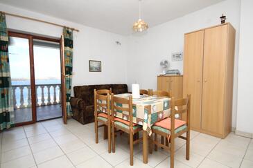Az Apartman 5 főt tud fogadni. Az ágyak a/az 2 hálószobában, és a étkezőban/ben vannak, melynek méretei 38m2. A forró nyári estéket a vendégek saját teraszukon élvezhetik. Az apartmanból tengerre néző kilátás nyílik. A közös barbecue-helyet a vendég szabadon használhatja. A szállásegységbe lehetséges háziállatot hozni felár ellenében.