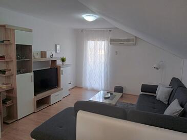 Az Apartman 4 főt tud fogadni. Az ágyak a/az 2 hálószobában vannak, melynek méretei 77m2. A forró nyári estéket a vendégek saját teraszukon élvezhetik. Az apartmanból tengerre néző kilátás nyílik. A közös barbecue-helyet a vendég szabadon használhatja.