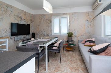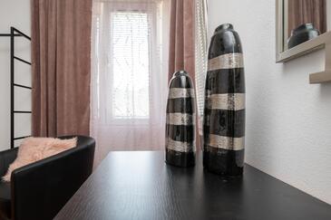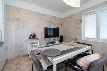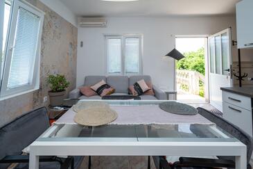 Az Apartman 3 főt tud fogadni. Az ágyak a/az 1 hálószobában, és a étkezőban/ben vannak, melynek méretei 35m2. A forró nyári estéket a vendégek saját teraszukon élvezhetik. A közös barbecue-helyet a vendég szabadon használhatja.