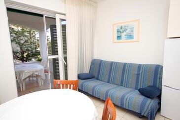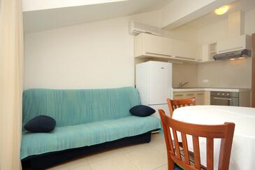 Az Apartman 4 főt tud fogadni. Az ágyak a/az 2 hálószobában vannak, melynek méretei 43m2. A forró nyári estéket a vendégek saját teraszukon élvezhetik. Az apartmanból tengerre néző kilátás nyílik. A közös barbecue-helyet a vendég szabadon használhatja. A szállásegységbe lehetséges háziállatot hozni felár ellenében.
