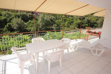 Az Apartman 4 főt tud fogadni. Az ágyak a/az 1 hálószobában, és a étkezőban/ben vannak, melynek méretei 43m2. A forró nyári estéket a vendégek saját teraszukon élvezhetik. Az apartmanból tengerre néző kilátás nyílik. A közös barbecue-helyet a vendég szabadon használhatja. A szállásegységbe lehetséges háziállatot hozni felár ellenében.