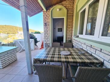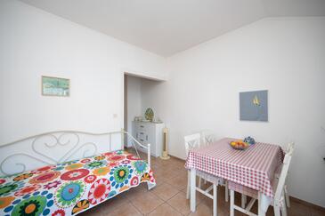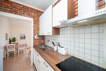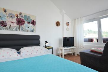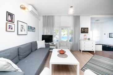 Az Apartman 5 főt tud fogadni. Az ágyak a/az 2 hálószobában, és a nappaliban/ben vannak, melynek méretei 70m2. A forró nyári estéket a vendégek saját teraszukon élvezhetik. Az apartmanból tengerre néző kilátás nyílik. A közös barbecue-helyet a vendég szabadon használhatja. A szállásegységbe lehetséges háziállatot hozni felár ellenében.