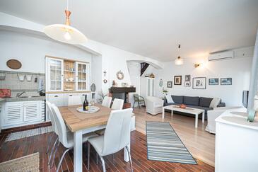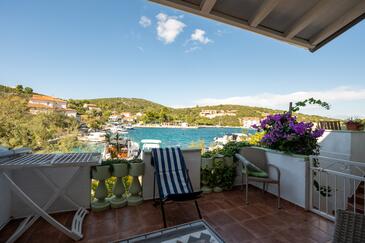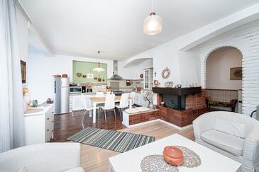 Az Apartman 5 főt tud fogadni. Az ágyak a/az 2 hálószobában, és a nappaliban/ben vannak, melynek méretei 70m2. A forró nyári estéket a vendégek saját teraszukon élvezhetik. Az apartmanból tengerre néző kilátás nyílik. A közös barbecue-helyet a vendég szabadon használhatja. A szállásegységbe lehetséges háziállatot hozni felár ellenében.