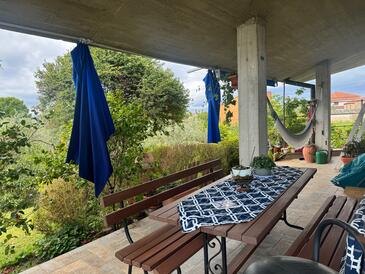 Az Apartman 4 főt tud fogadni. Az ágyak a/az 2 hálószobában vannak, melynek méretei 105m2. A forró nyári estéket a vendégek saját teraszukon élvezhetik. Az apartmanból tengerre néző kilátás nyílik. A teljes élvezet és kikapcsolódás érdekében van saját barbecue hely is, csakis e szálláshely vendégei számára.