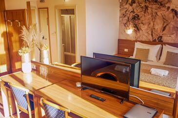 Az Szoba 2 főt tud fogadni. Az ágyak a/az 1 hálószobában vannak, melynek méretei 25m2. A forró nyári estéket a vendégek saját balkonukon élvezhetik. A vendégek itt tartózkodásuk ideje alatt használhatják a közös medencét. A szállásegységbe lehetséges háziállatot hozni felár ellenében. A lefoglalt szállásegység a szoba kategóriába tartozik, amely saját fürdőszobával rendelkezik, azonban konyha illetve konyha használat nem tartozik a felszereltséghez..