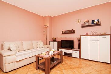 Az Apartman 4 főt tud fogadni. Az ágyak a/az 1 hálószobában, és a nappaliban/ben vannak, melynek méretei 45m2. A forró nyári estéket a vendégek saját teraszukon élvezhetik. A közös barbecue-helyet a vendég szabadon használhatja.