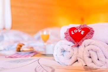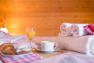 Az Ház 8 főt tud fogadni. Az ágyak a/az 4 hálószobában vannak, melynek méretei 97m2. A forró nyári estéket a vendégek saját teraszukon élvezhetik. A teljes élvezet és kikapcsolódás érdekében van saját barbecue hely is, csakis e szálláshely vendégei számára. A lefoglalt szállásegység vendégeinek az érkezés napján a helyszínen letétet kell fizetniük (az összeg a honlapon fel van tüntetve).