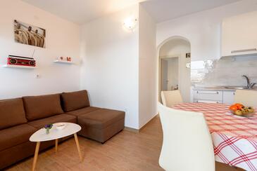 Az Apartman 4 főt tud fogadni. Az ágyak a/az 2 hálószobában vannak, melynek méretei 35m2. A forró nyári estéket a vendégek saját balkonukon élvezhetik. Az apartmanból tengerre néző kilátás nyílik. A közös barbecue-helyet a vendég szabadon használhatja.