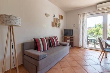 Az Apartman 4 főt tud fogadni. Az ágyak a/az 2 hálószobában vannak, melynek méretei 38m2. A forró nyári estéket a vendégek saját teraszukon élvezhetik. Az apartmanból tengerre néző kilátás nyílik. A közös barbecue-helyet a vendég szabadon használhatja. A szállásegységbe lehetséges háziállatot hozni, ennek költségét a foglalási díj tartalmazza.