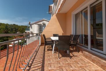 Az Apartman 4 főt tud fogadni. Az ágyak a/az 2 hálószobában vannak, melynek méretei 38m2. A forró nyári estéket a vendégek saját teraszukon élvezhetik. Az apartmanból tengerre néző kilátás nyílik. A közös barbecue-helyet a vendég szabadon használhatja. A szállásegységbe lehetséges háziállatot hozni, ennek költségét a foglalási díj tartalmazza.