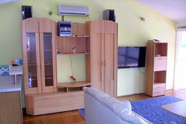 Az Apartman 6 főt tud fogadni. Az ágyak a/az 3 hálószobában vannak, melynek méretei 78m2. A forró nyári estéket a vendégek saját teraszukon élvezhetik. Az apartmanból tengerre néző kilátás nyílik. A közös barbecue-helyet a vendég szabadon használhatja. A szállásegységbe lehetséges háziállatot hozni felár ellenében.