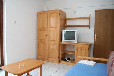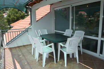 Az Apartman 6 főt tud fogadni. Az ágyak a/az 3 hálószobában vannak, melynek méretei 78m2. A forró nyári estéket a vendégek saját teraszukon élvezhetik. Az apartmanból tengerre néző kilátás nyílik. A közös barbecue-helyet a vendég szabadon használhatja. A szállásegységbe lehetséges háziállatot hozni felár ellenében.