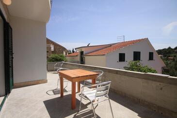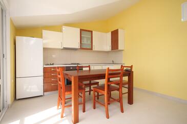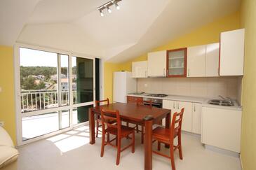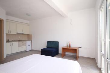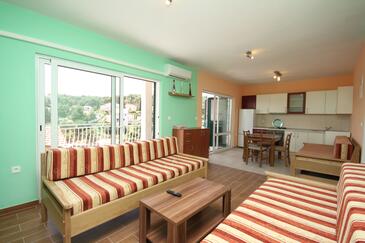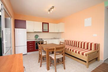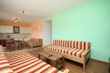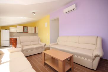 Az Apartman 6 főt tud fogadni. Az ágyak a/az 2 hálószobában, és a nappaliban/ben vannak, melynek méretei 59m2. A forró nyári estéket a vendégek saját teraszukon élvezhetik. Az apartmanból tengerre néző kilátás nyílik. A közös barbecue-helyet a vendég szabadon használhatja. A szállásegységbe lehetséges háziállatot hozni felár ellenében.