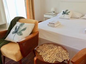 Az Apartman 5 főt tud fogadni. Az ágyak a/az 2 hálószobában, és a nappaliban/ben vannak, melynek méretei 57m2. A forró nyári estéket a vendégek saját teraszukon élvezhetik. Az apartmanból tengerre néző kilátás nyílik. A közös barbecue-helyet a vendég szabadon használhatja.