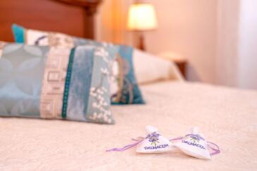 Az Apartman 7 főt tud fogadni. Az ágyak a/az 3 hálószobában vannak, melynek méretei 92m2. A forró nyári estéket a vendégek saját balkonukon élvezhetik. Az apartmanból tengerre néző kilátás nyílik. A közös barbecue-helyet a vendég szabadon használhatja. A vendégek itt tartózkodásuk ideje alatt használhatják a közös medencét.