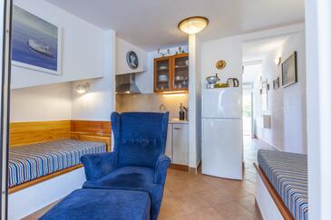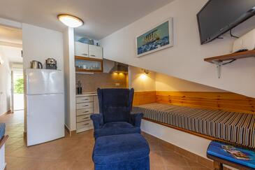 Az Apartman 4 főt tud fogadni. Az ágyak a/az 1 hálószobában, és a nappaliban/ben vannak, melynek méretei 28m2. A forró nyári estéket a vendégek saját teraszukon élvezhetik. Az apartmanból tengerre néző kilátás nyílik. A közös barbecue-helyet a vendég szabadon használhatja. A lefoglalt szállásegység vendégeinek az érkezés napján a helyszínen letétet kell fizetniük (az összeg a honlapon fel van tüntetve).