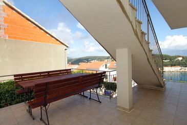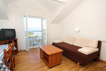 Az Apartman 3 főt tud fogadni. Az ágyak a/az 1 hálószobában, és a nappaliban/ben vannak, melynek méretei 46m2. A forró nyári estéket a vendégek saját balkonukon élvezhetik. Az apartmanból tengerre néző kilátás nyílik. A közös barbecue-helyet a vendég szabadon használhatja.
