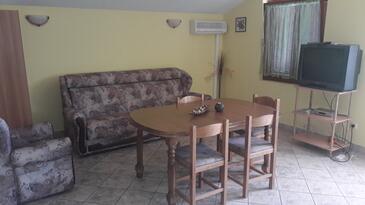 Az Apartman 5 főt tud fogadni. Az ágyak a/az 2 hálószobában, és a nappaliban/ben vannak, melynek méretei 57m2. A forró nyári estéket a vendégek saját teraszukon élvezhetik. Az apartmanból tengerre néző kilátás nyílik. A közös barbecue-helyet a vendég szabadon használhatja. A szállásegységbe lehetséges háziállatot hozni, ennek költségét a foglalási díj tartalmazza.