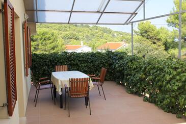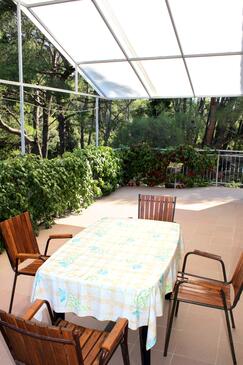 Az Apartman 5 főt tud fogadni. Az ágyak a/az 2 hálószobában, és a nappaliban/ben vannak, melynek méretei 57m2. A forró nyári estéket a vendégek saját teraszukon élvezhetik. Az apartmanból tengerre néző kilátás nyílik. A közös barbecue-helyet a vendég szabadon használhatja. A szállásegységbe lehetséges háziállatot hozni, ennek költségét a foglalási díj tartalmazza.