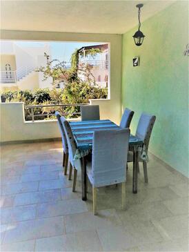 Az Apartman 7 főt tud fogadni. Az ágyak a/az 2 hálószobában, és a nappaliban/ben vannak, melynek méretei 62m2. A forró nyári estéket a vendégek saját teraszukon élvezhetik. Az apartmanból tengerre néző kilátás nyílik. A közös barbecue-helyet a vendég szabadon használhatja. A szállásegységbe lehetséges háziállatot hozni felár ellenében.