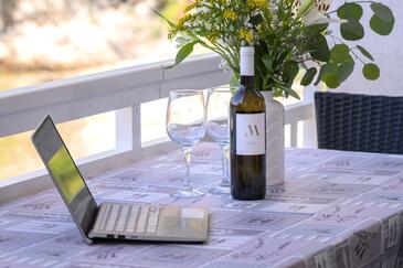 Az Ház 8 főt tud fogadni. Az ágyak a/az 2 hálószobában, és a étkezőban/ben vannak, melynek méretei 62m2. A forró nyári estéket a vendégek saját teraszukon élvezhetik. A házból tengerre néző kilátás nyílik. A teljes élvezet és kikapcsolódás érdekében van saját barbecue hely is, csakis e szálláshely vendégei számára. A lefoglalt szállásegység bizonyos helyiségei nem összekötöttek.