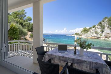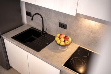 Az Ház 8 főt tud fogadni. Az ágyak a/az 2 hálószobában, és a étkezőban/ben vannak, melynek méretei 62m2. A forró nyári estéket a vendégek saját teraszukon élvezhetik. A házból tengerre néző kilátás nyílik. A teljes élvezet és kikapcsolódás érdekében van saját barbecue hely is, csakis e szálláshely vendégei számára. A lefoglalt szállásegység bizonyos helyiségei nem összekötöttek.