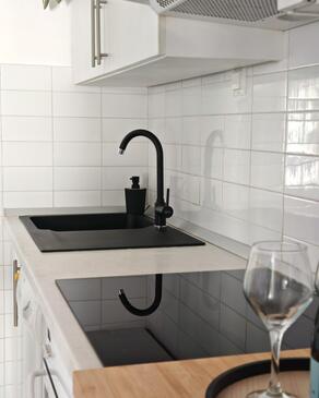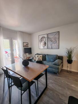 Az Apartman 3 főt tud fogadni. Az ágyak a/az 1 hálószobában, és a nappaliban/ben vannak, melynek méretei 27m2. A forró nyári estéket a vendégek saját teraszukon élvezhetik. Az apartmanból tengerre néző kilátás nyílik. A közös barbecue-helyet a vendég szabadon használhatja. A szállásegységbe lehetséges háziállatot hozni, ennek költségét a foglalási díj tartalmazza.