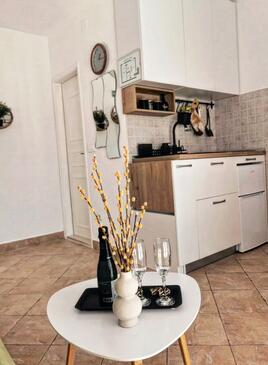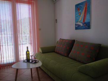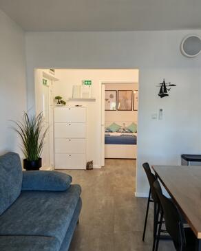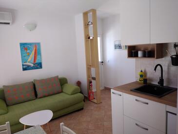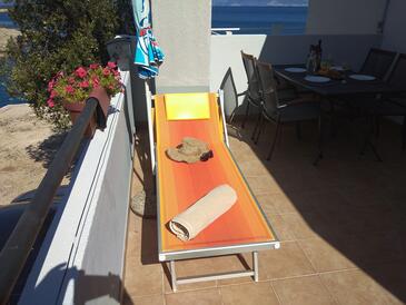 Az Apartman 3 főt tud fogadni. Az ágyak a/az 1 hálószobában, és a nappaliban/ben vannak, melynek méretei 27m2. A forró nyári estéket a vendégek saját teraszukon élvezhetik. Az apartmanból tengerre néző kilátás nyílik. A közös barbecue-helyet a vendég szabadon használhatja. A szállásegységbe lehetséges háziállatot hozni, ennek költségét a foglalási díj tartalmazza.