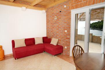 Az Apartman 5 főt tud fogadni. Az ágyak a/az 2 hálószobában, és a nappaliban/ben vannak, melynek méretei 42m2. A forró nyári estéket a vendégek saját teraszukon élvezhetik. Az apartmanból tengerre néző kilátás nyílik. A közös barbecue-helyet a vendég szabadon használhatja. A szállásegységbe lehetséges háziállatot hozni felár ellenében.