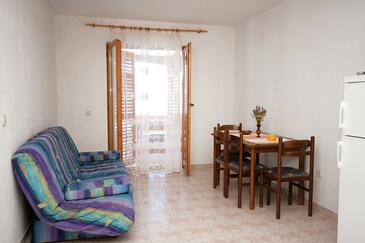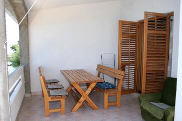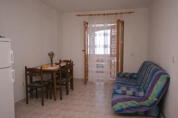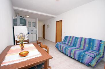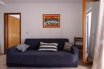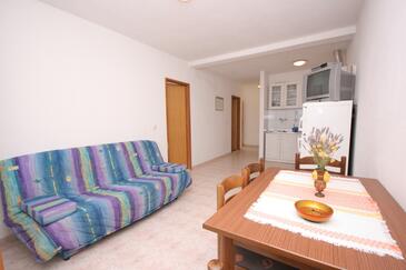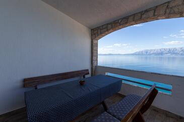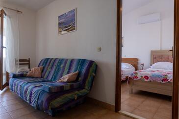 Az Apartman 6 főt tud fogadni. Az ágyak a/az 2 hálószobában, és a étkezőban/ben vannak, melynek méretei 52m2. A forró nyári estéket a vendégek saját teraszukon élvezhetik. Az apartmanból tengerre néző kilátás nyílik. A közös barbecue-helyet a vendég szabadon használhatja. A szállásegységbe lehetséges háziállatot hozni felár ellenében.