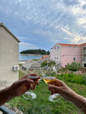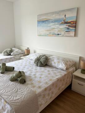 Az Apartman 6 főt tud fogadni. Az ágyak a/az 2 hálószobában vannak, melynek méretei 32m2. A forró nyári estéket a vendégek saját teraszukon élvezhetik. Az apartmanból tengerre néző kilátás nyílik. A közös barbecue-helyet a vendég szabadon használhatja. A szállásegységbe lehetséges háziállatot hozni felár ellenében.