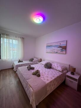Az Apartman 6 főt tud fogadni. Az ágyak a/az 2 hálószobában vannak, melynek méretei 32m2. A forró nyári estéket a vendégek saját teraszukon élvezhetik. Az apartmanból tengerre néző kilátás nyílik. A közös barbecue-helyet a vendég szabadon használhatja. A szállásegységbe lehetséges háziállatot hozni felár ellenében.