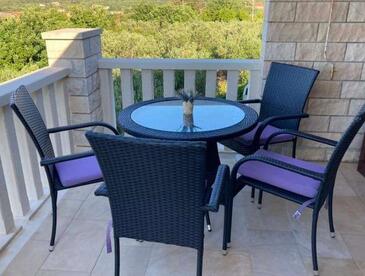 Az Apartman 5 főt tud fogadni. Az ágyak a/az 2 hálószobában vannak, melynek méretei 60m2. A forró nyári estéket a vendégek saját teraszukon élvezhetik. Az apartmanból tengerre néző kilátás nyílik. A közös barbecue-helyet a vendég szabadon használhatja. A szállásegységbe lehetséges háziállatot hozni, ennek költségét a foglalási díj tartalmazza.