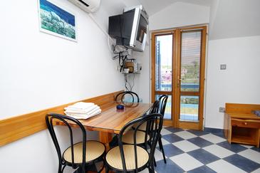 Az Apartman 4 főt tud fogadni. Az ágyak a/az 1 hálószobában, és a nappaliban/ben vannak, melynek méretei 32m2. A forró nyári estéket a vendégek saját balkonukon élvezhetik. Az apartmanból tengerre néző kilátás nyílik. A közös barbecue-helyet a vendég szabadon használhatja. A szállásegységbe lehetséges háziállatot hozni felár ellenében.