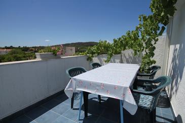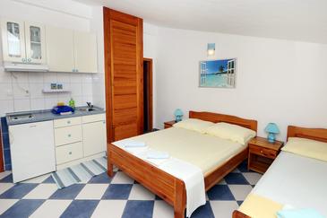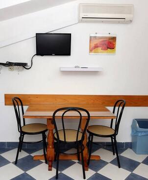 Az Apartman 4 főt tud fogadni. Az ágyak a/az 1 hálószobában, és a nappaliban/ben vannak, melynek méretei 32m2. A forró nyári estéket a vendégek saját balkonukon élvezhetik. Az apartmanból tengerre néző kilátás nyílik. A közös barbecue-helyet a vendég szabadon használhatja. A szállásegységbe lehetséges háziállatot hozni felár ellenében.