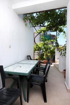 Az Apartman 5 főt tud fogadni. Az ágyak a/az 1 hálószobában, és a nappaliban/ben vannak, melynek méretei 45m2. A forró nyári estéket a vendégek saját balkonukon élvezhetik. Az apartmanból tengerre néző kilátás nyílik. A közös barbecue-helyet a vendég szabadon használhatja. A szállásegységbe lehetséges háziállatot hozni felár ellenében. A lefoglalt szállásegység közös teraszt használ..