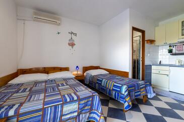 Az Stúdió 2 főt tud fogadni. Az ágyak a/az 1 hálószobában vannak, melynek méretei 14m2. A forró nyári estéket a vendégek saját balkonukon élvezhetik. A közös barbecue-helyet a vendég szabadon használhatja. A szállásegységbe lehetséges háziállatot hozni felár ellenében.