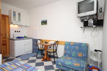 Az Stúdió 2 főt tud fogadni. Az ágyak a/az 1 hálószobában vannak, melynek méretei 14m2. A forró nyári estéket a vendégek saját balkonukon élvezhetik. A közös barbecue-helyet a vendég szabadon használhatja. A szállásegységbe lehetséges háziállatot hozni felár ellenében.