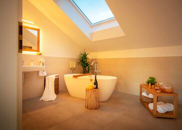 Az Ház 10 főt tud fogadni. Az ágyak a/az 4 hálószobában vannak, melynek méretei 247m2. A forró nyári estéket a vendégek saját teraszukon élvezhetik. A házból tengerre néző kilátás nyílik. A teljes élvezet és kikapcsolódás érdekében van saját barbecue hely is, csakis e szálláshely vendégei számára. A vendégek itt tartózkodásuk ideje alatt kikapcsolódás céljából használhatják a magán medencét. A szállásegységbe lehetséges háziállatot hozni felár ellenében.