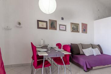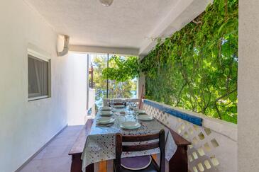 Az Apartman 8 főt tud fogadni. Az ágyak a/az 4 hálószobában vannak, melynek méretei 70m2. A forró nyári estéket a vendégek saját teraszukon élvezhetik. Az apartmanból tengerre néző kilátás nyílik. A közös barbecue-helyet a vendég szabadon használhatja. A szállásegységbe lehetséges háziállatot hozni, ennek költségét a foglalási díj tartalmazza.