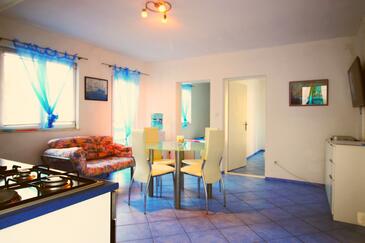 Az Apartman 4 főt tud fogadni. Az ágyak a/az 2 hálószobában vannak, melynek méretei 41m2. A forró nyári estéket a vendégek saját balkonukon élvezhetik. Az apartmanból tengerre néző kilátás nyílik. A teljes élvezet és kikapcsolódás érdekében van saját barbecue hely is, csakis e szálláshely vendégei számára. A szállásegységbe lehetséges háziállatot hozni felár ellenében. A lefoglalt szállásegység közös teraszt használ..