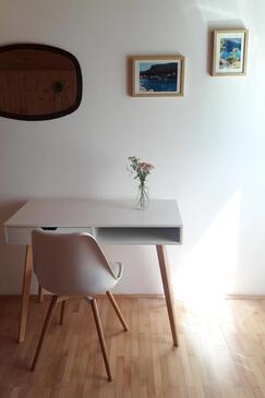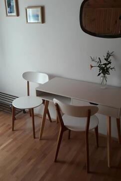 Az Apartman 8 főt tud fogadni. Az ágyak a/az 3 hálószobában vannak, melynek méretei 79m2. A forró nyári estéket a vendégek saját teraszukon élvezhetik. Az apartmanból tengerre néző kilátás nyílik. A közös barbecue-helyet a vendég szabadon használhatja.