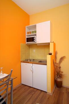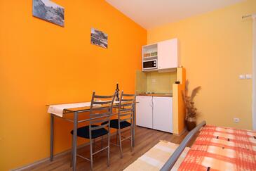 Az Stúdió 2 főt tud fogadni. Az ágyak a/az 1 hálószobában vannak, melynek méretei 17m2. A forró nyári estéket a vendégek saját teraszukon élvezhetik. A közös barbecue-helyet a vendég szabadon használhatja. A szállásegységbe lehetséges háziállatot hozni, ennek költségét a foglalási díj tartalmazza.